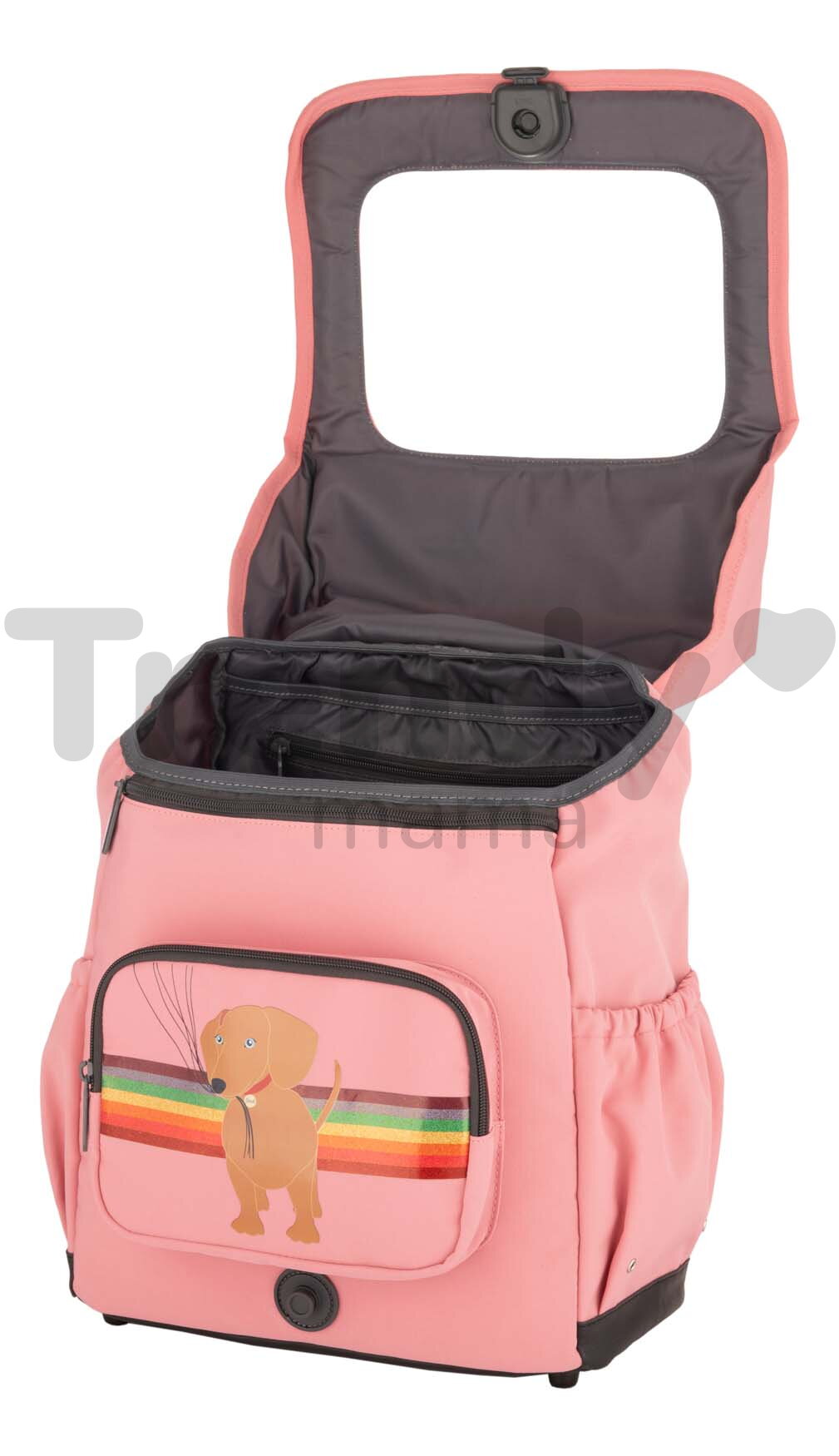 Geanta școlară roz este recomandată copiilor de la 6 ani. Rucsacul gol cântărește doar 800 g și nu încarcă coloana vertebrală a copilului. La cumpărare, părinții vor aprecia cu siguranță spatele cu formă anatomică, cu întărituri moi și bretele căptușite, care sunt atât de confortabile încât copiii nici măcar nu vor simți geanta pe umeri.