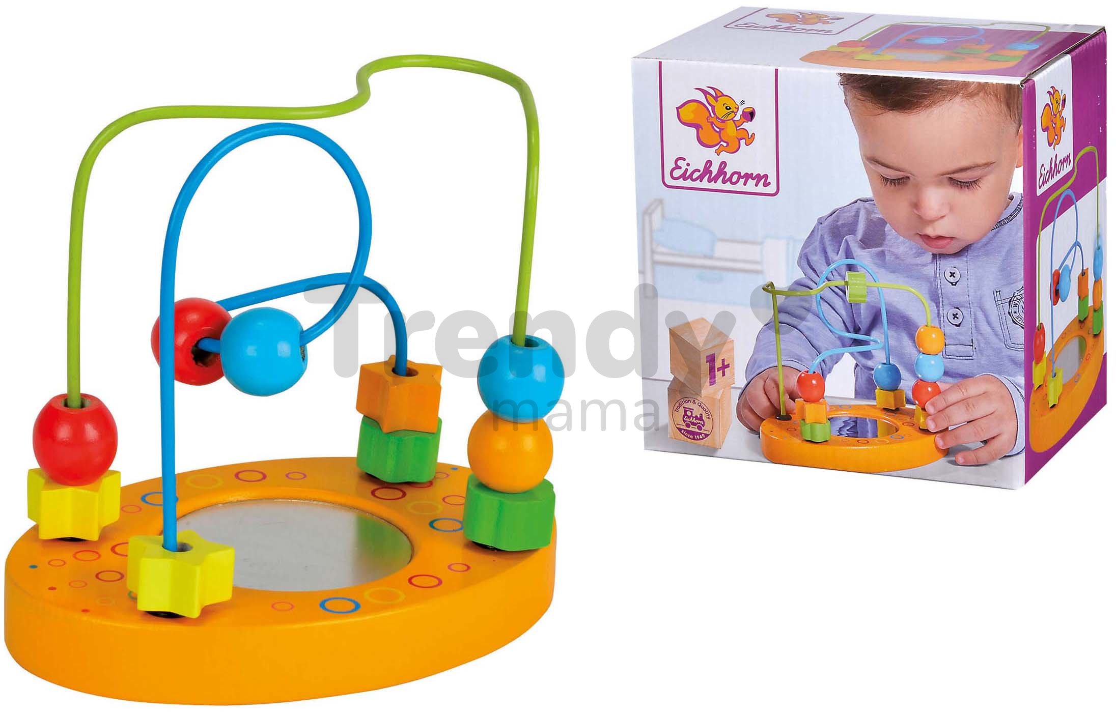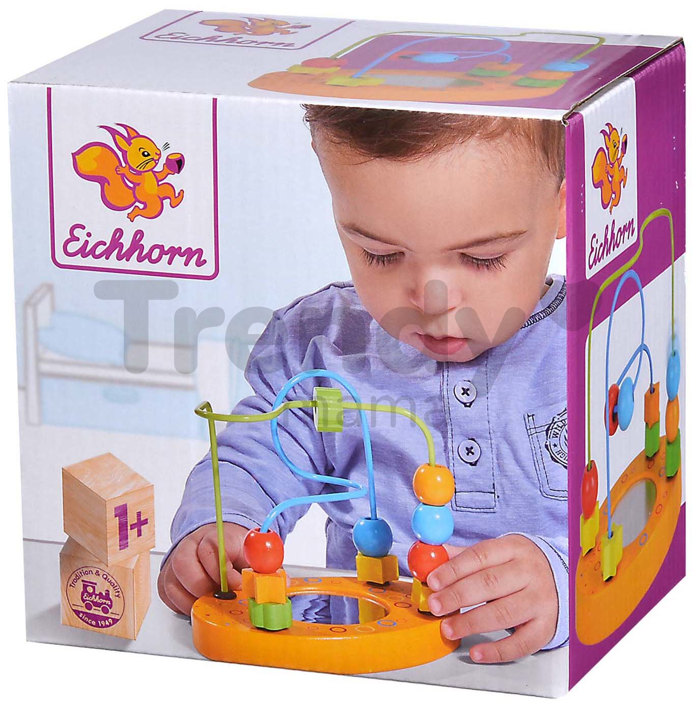 Labirintul de lemn cu mărgele Bead Maze de la marca germană Eichhorn este o jucărie didactică excelentă pentru băieții și fetele de la vârsta de 12 luni. Labirintul din lemn este realizat din lemn de mesteacăn de înaltă calitate, cu o suprafață moale în culori frumoase, astfel că va lumina fiecare cameră a copiilor. Datorită celor 2 piste, copilul învață treptat să mute mărgelele colorate de diferite forme, dezvoltându-și astfel abilitățile motorice, învățând noi culori și forme. De asemenea, își îmbunătățesc viziunea spațială și gândirea logică într-un mod jucăuș, iar labirintul mai conține și oglindă, astfel încăt copilul să poată examine refelexiile din jur.