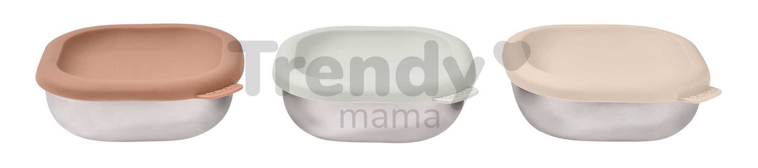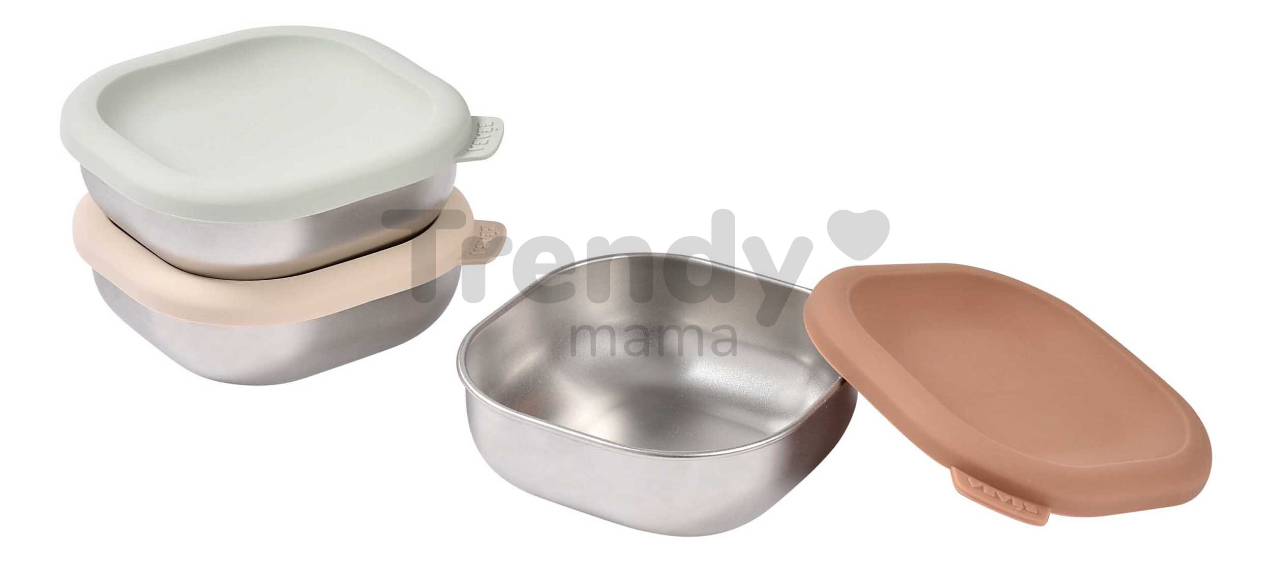 Setul de recipiente din inox pentru alimente de la brandul francez Beaba conține trei recipiente din oțel inoxidabil, ideale pentru primele mese ale bebelușului, dar potrivite și pentru copiii mai mari. Recipientele din inox cu capace din silicon sunt versatile și pot fi folosite pentru depozitarea alimentelor în frigider sau congelator, pentru transport, încălzire în cuptorul cu microunde și cuptorul clasic sau pentru servirea mâncării copilului. Fiecare recipient are o capacitate de 250 ml, fiind perfecte pentru primele porții de mâncare sau ca recipiente pentru gustări pentru copii.