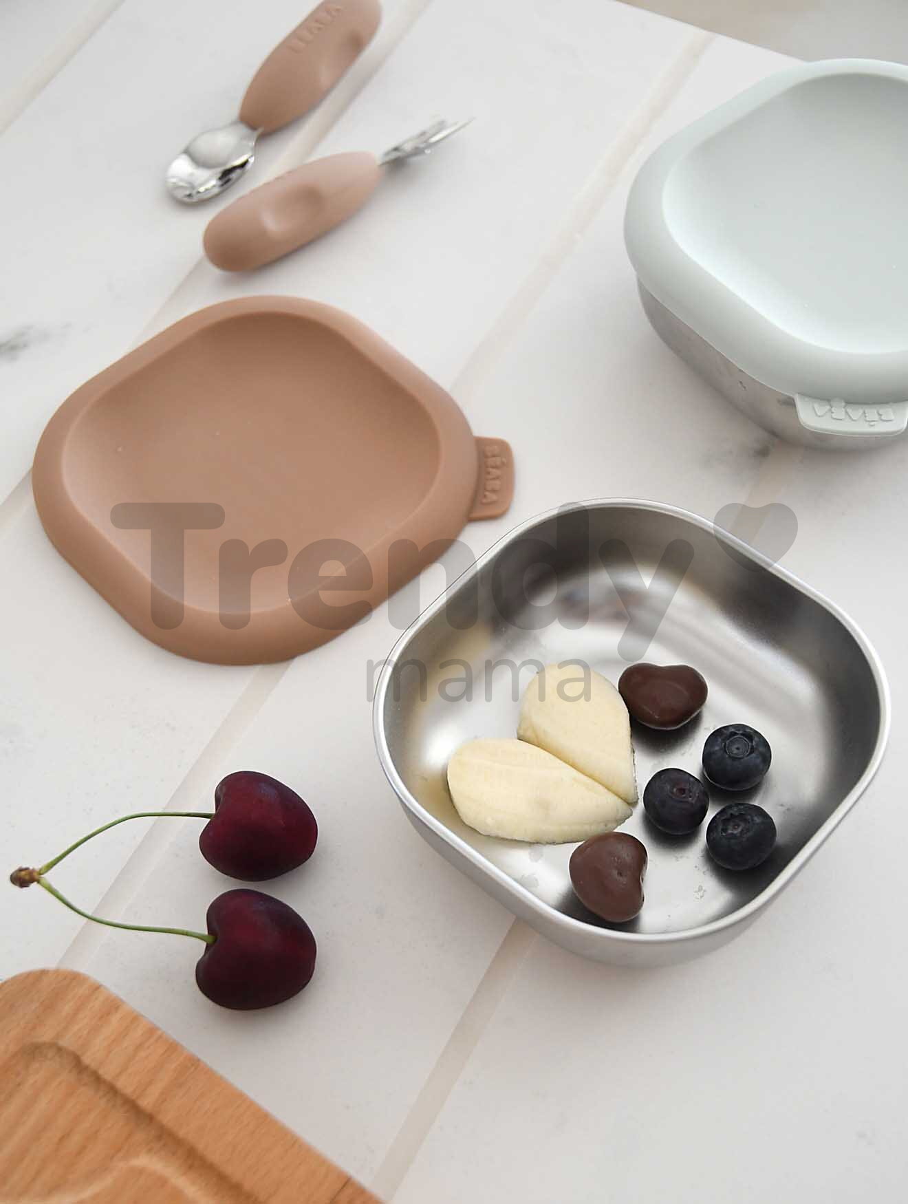 Recipientele din oțel inoxidabil Beaba au un design inovator, evidențiat de capacul din silicon care etanșează perfect. Ambele materiale utilizate la fabricarea recipientelor Beaba sunt sigure pentru sănătate, nu conțin substanțe chimice și nu transferă gust sau miros alimentelor. Recipientele Beaba sunt ușoare, rezistente la spargere și etanșe, fiind ideale atât pentru utilizarea acasă, cât și în deplasările cu copilul. Aceste recipiente le ușurează considerabil părinților viața de zi cu zi, iar după utilizare pot fi spălate în mașina de spălat vase sau manual, cu un burete moale.